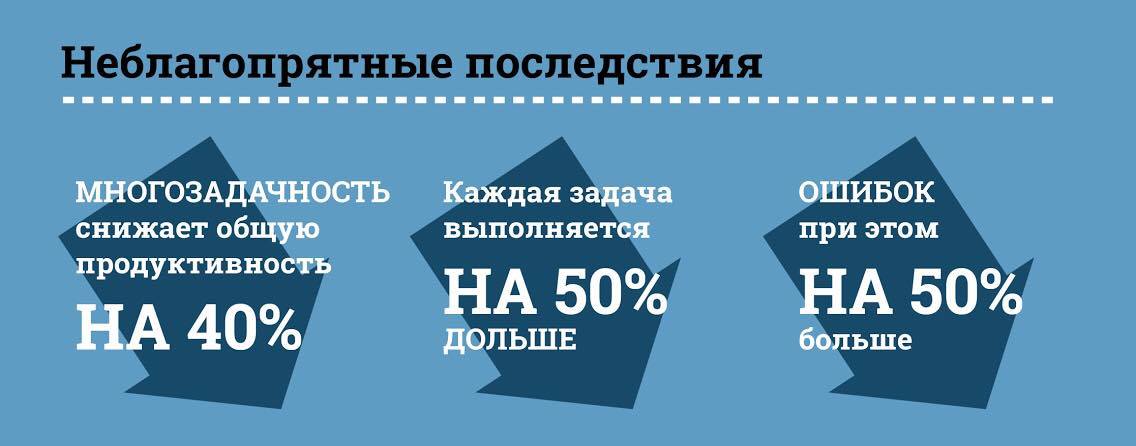 Переключение между окнами создает эффект «потери времени» — мы тратим драгоценные секунды или даже минуты на «восстановление» внутреннего состояния после переключения‚ что в сумме сказывается на сроках завершения задач․